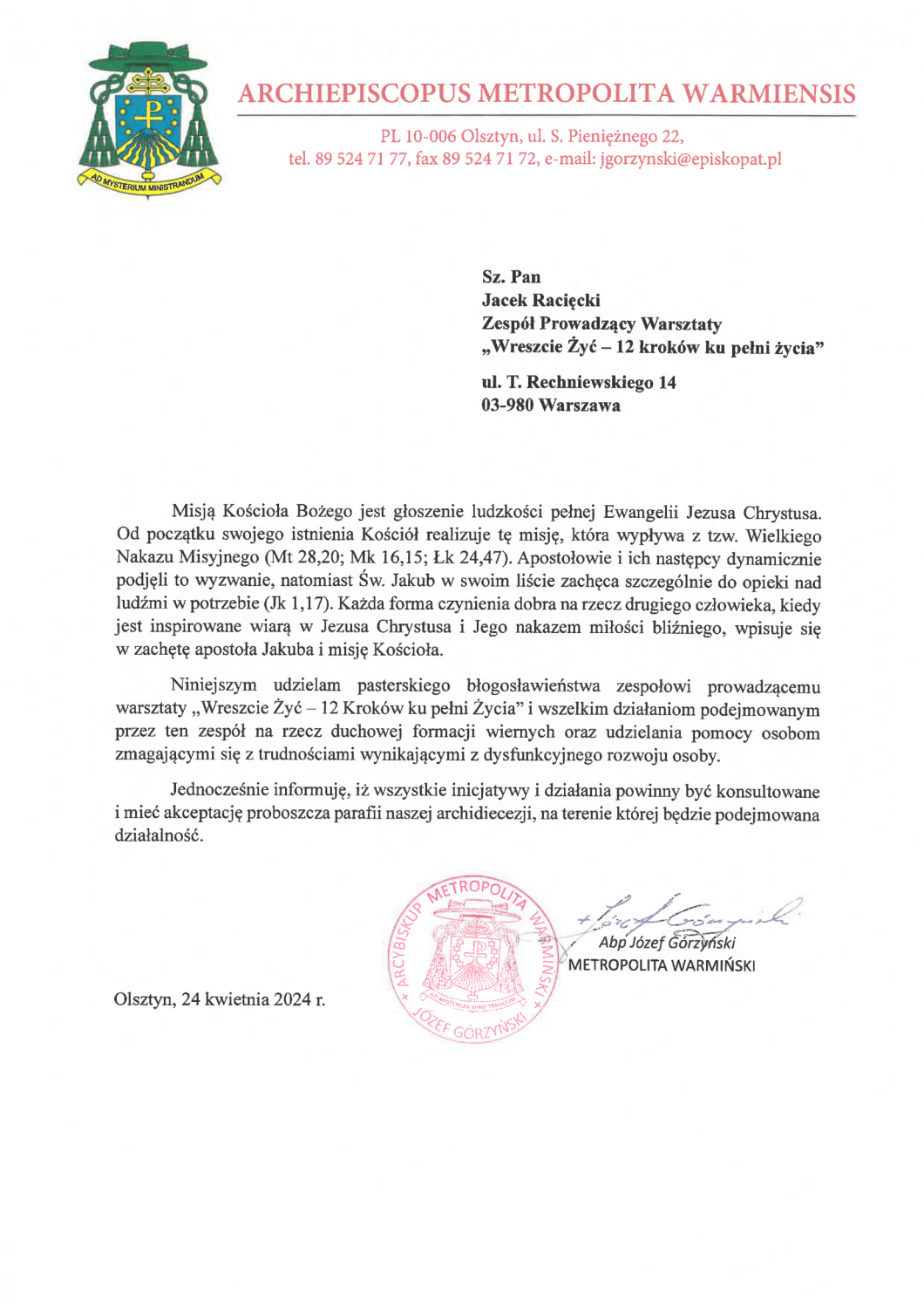 BŁOGOSŁAWIEŃSTWO METROPOLITY WARMIŃSKIEGO