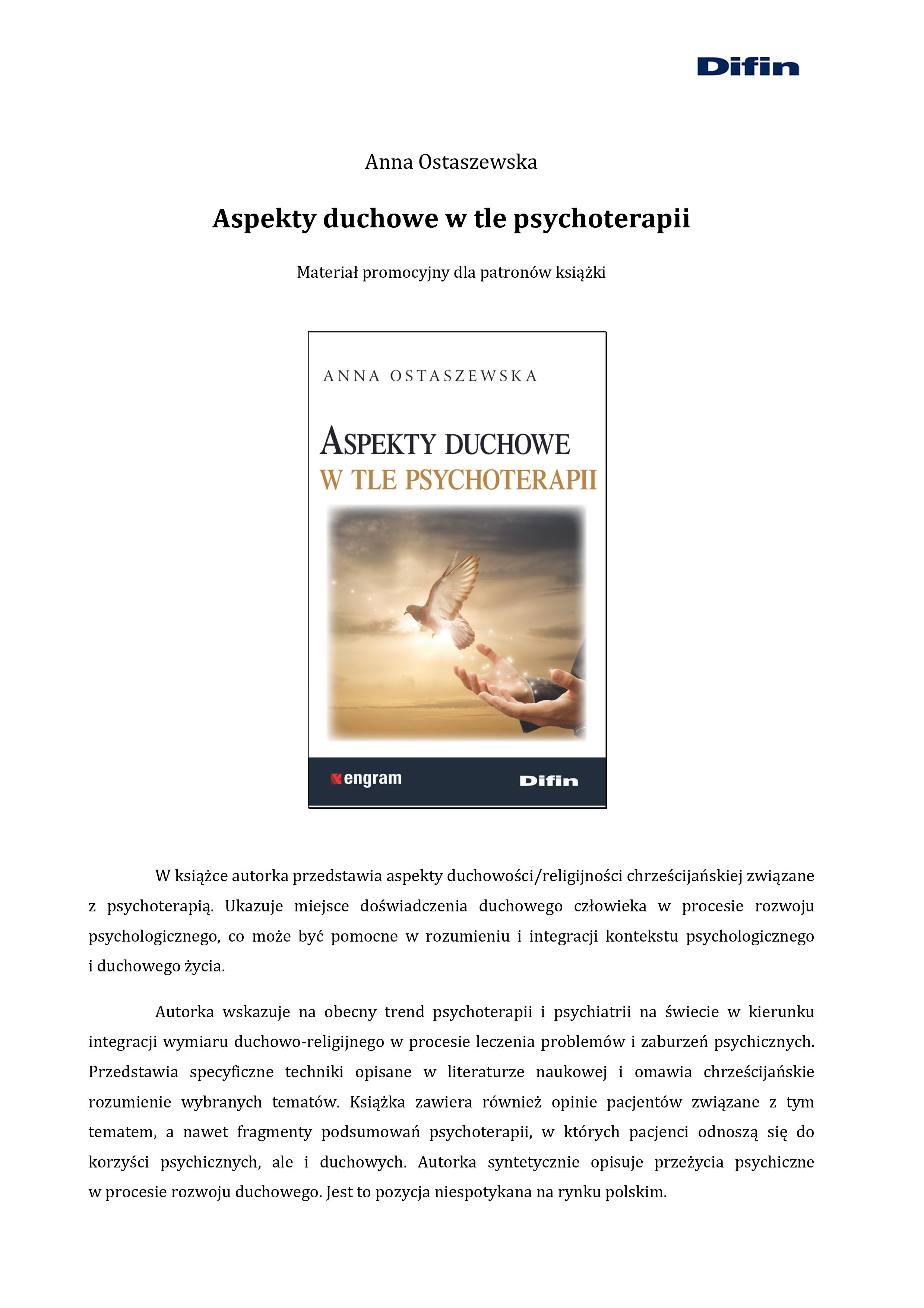 ASPEKTY DUCHOWE W TLE PSYCHOTERAPII